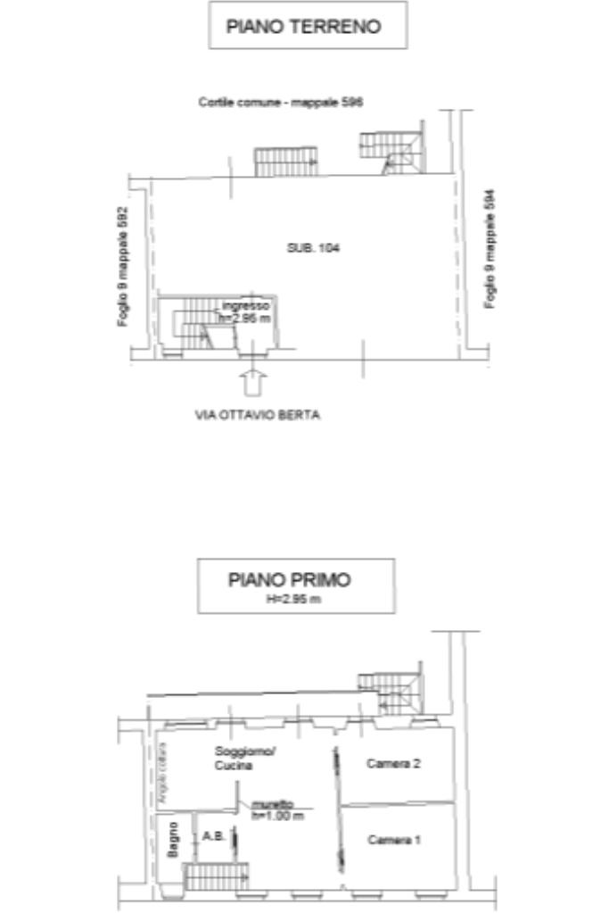 Collegato sia dal vano scala interno e sia da una scala esterna situata all'interno del cortile comune, il Piano Primo offre l'abitazione, anch'essa oggetto della ristrutturazione e composta da ingresso living sull'ampio soggiorno con angolo cottura, due camere da letto e il bagno.