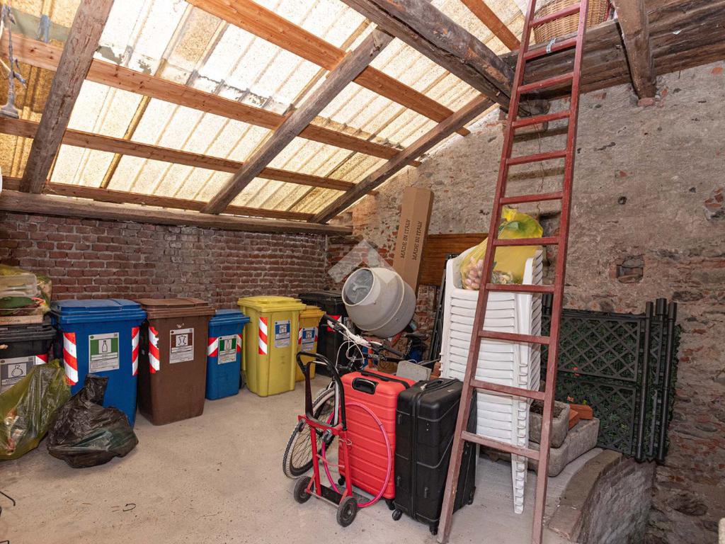 Nel cortile il locale magazzino di circa 40 mq con soprastante travata, può essere utilizzato sia come autorimessa per l'auto e sia come magazzino destinato all'attività commerciale. Al di sotto di esso vi è inoltre una cantina.