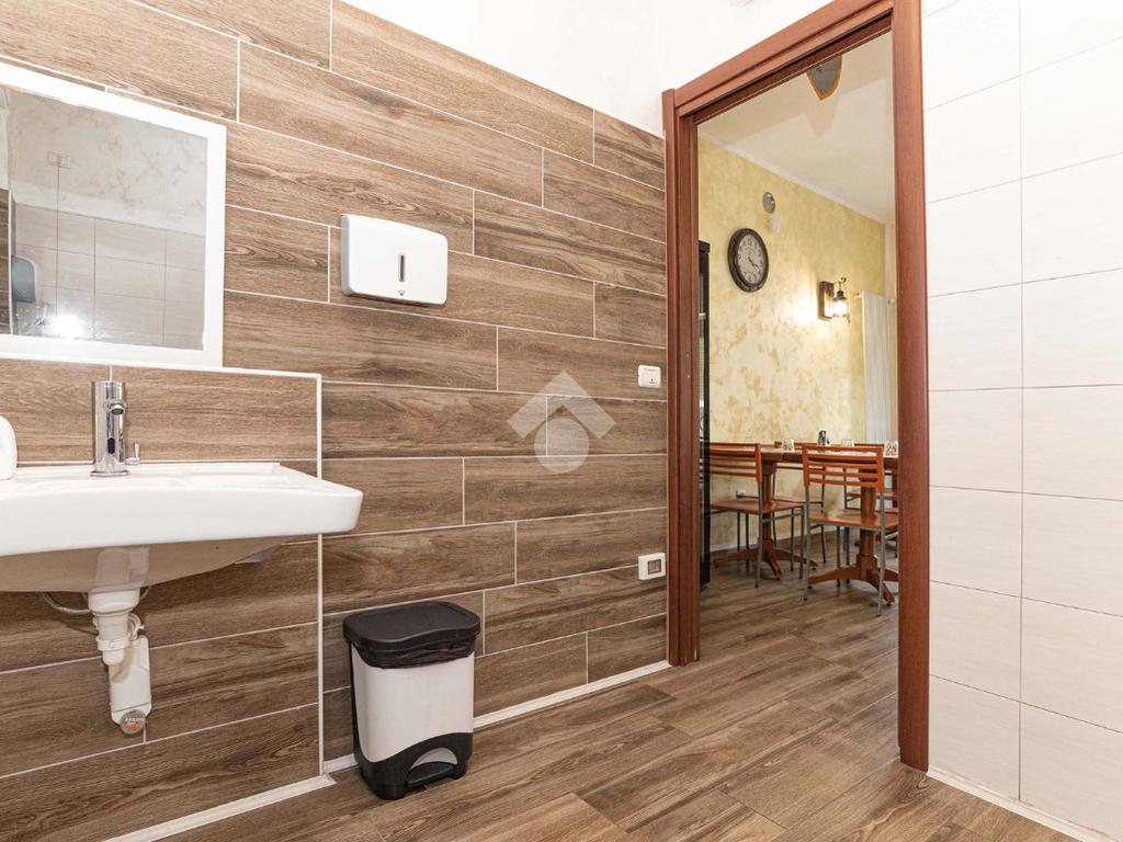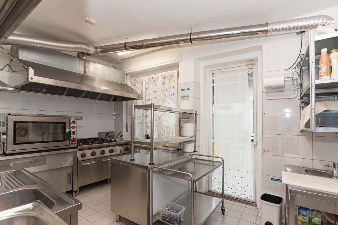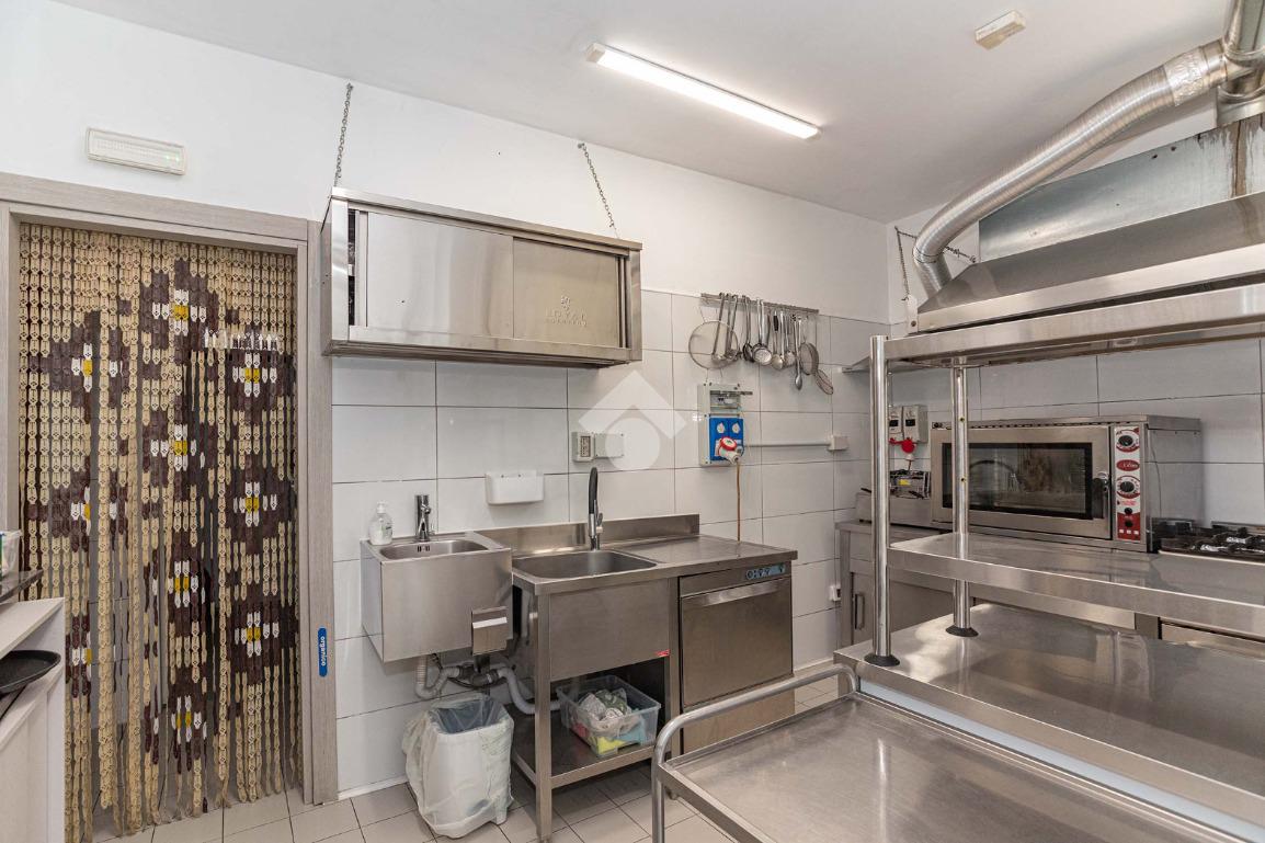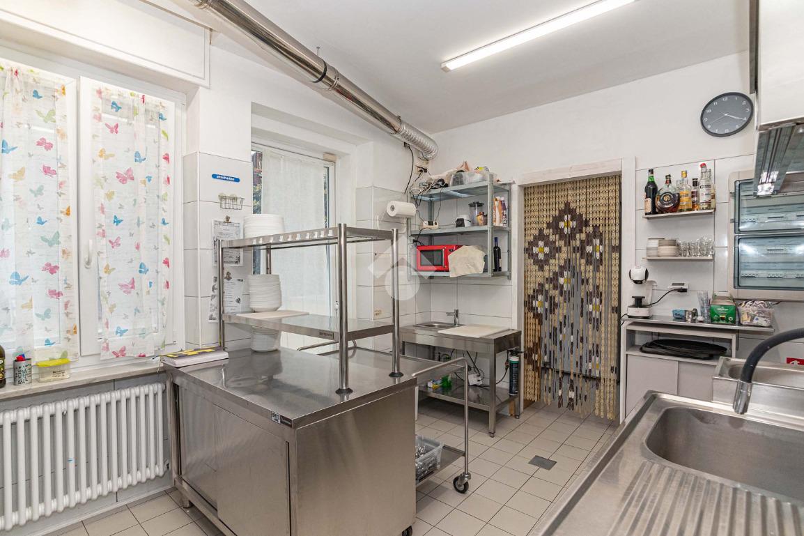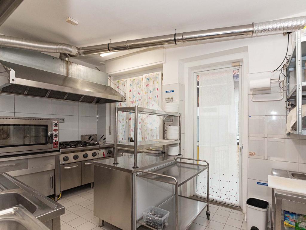 Al Piano Terreno i vani destinati ad uso negozio attualmente sono destinati per l'attività di ristorazione ed adeguati alle normative vigenti. Lo spazio di questo piano si compone di sala ristorante, cucina con canna fumaria privata, bagno per i clienti, spogliatoio e bagno per il personale.