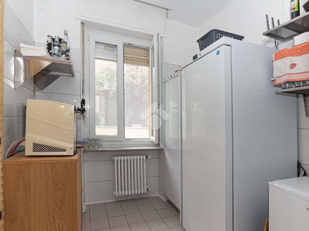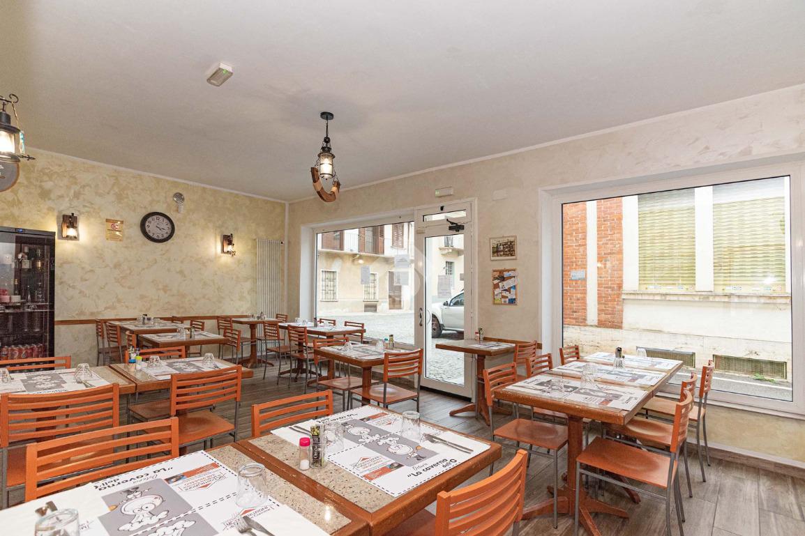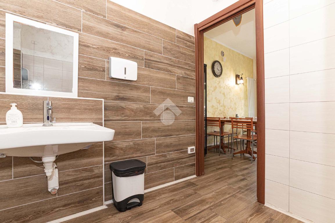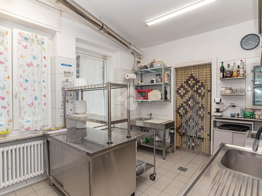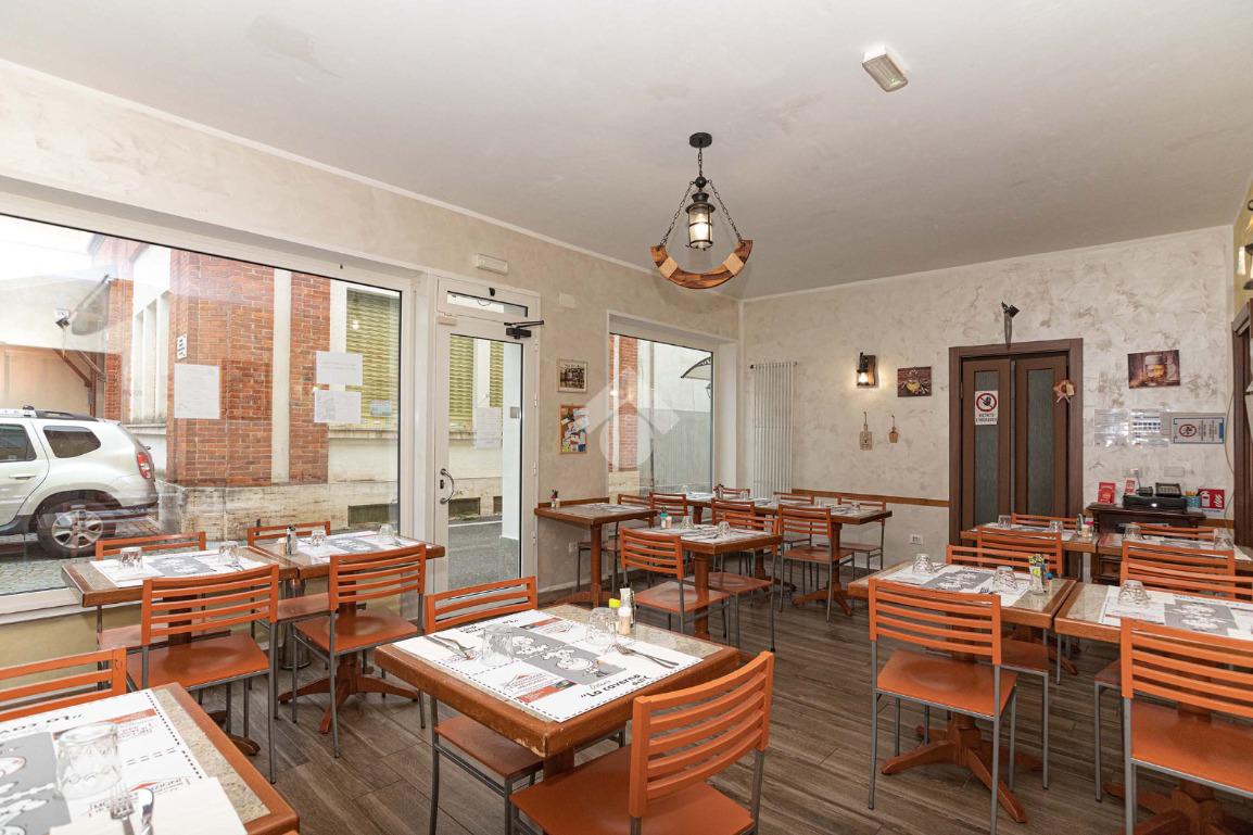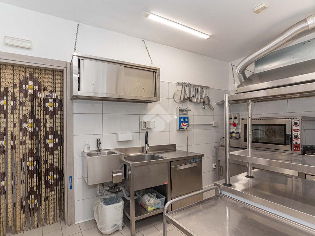 Al Piano Terreno i vani destinati ad uso negozio attualmente sono destinati per l'attività di ristorazione ed adeguati alle normative vigenti. Lo spazio di questo piano si compone di sala ristorante, cucina con canna fumaria privata, bagno per i clienti, spogliatoio e bagno per il personale.