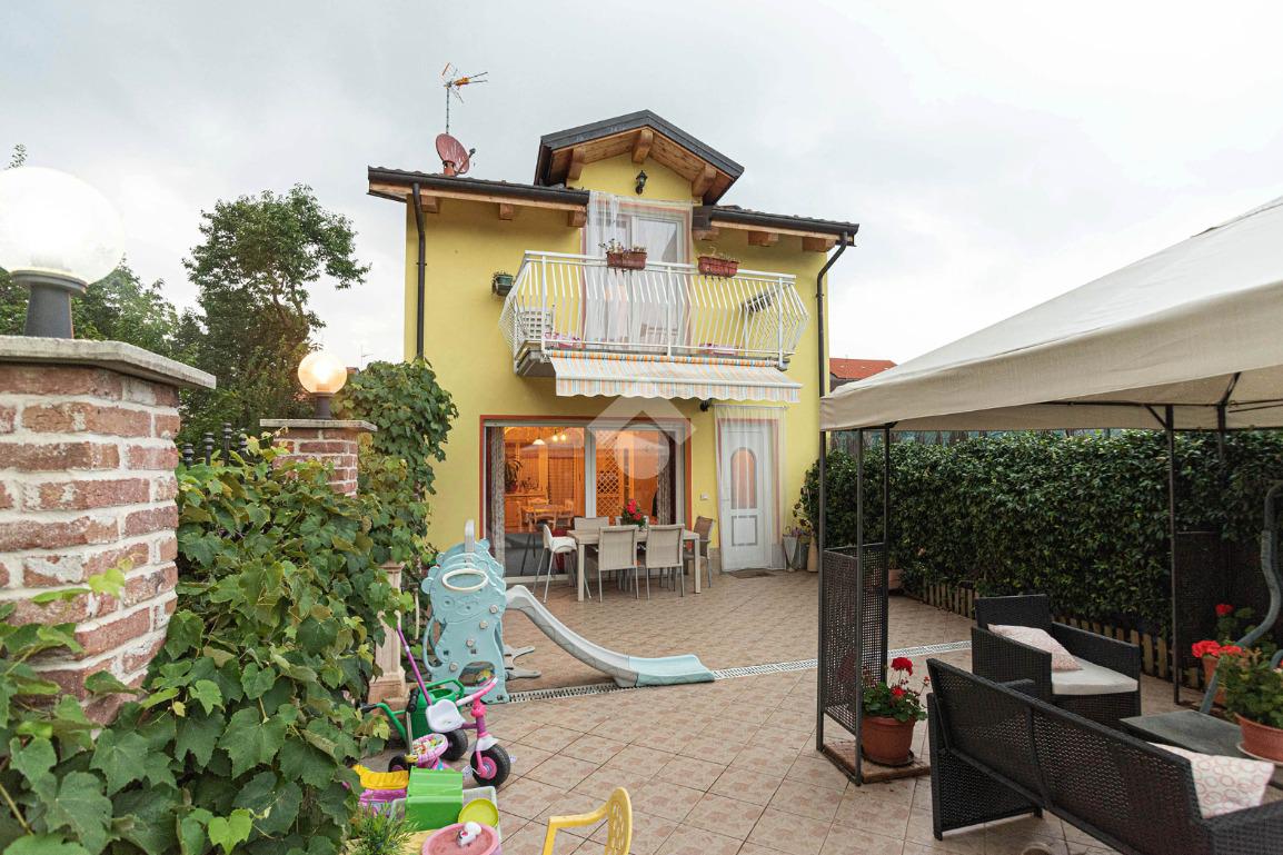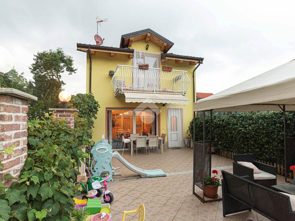 In centro Paese, in contesto residenziale e tranquillo, villetta indipendente libera su quattro lati realizzata nel 2013.