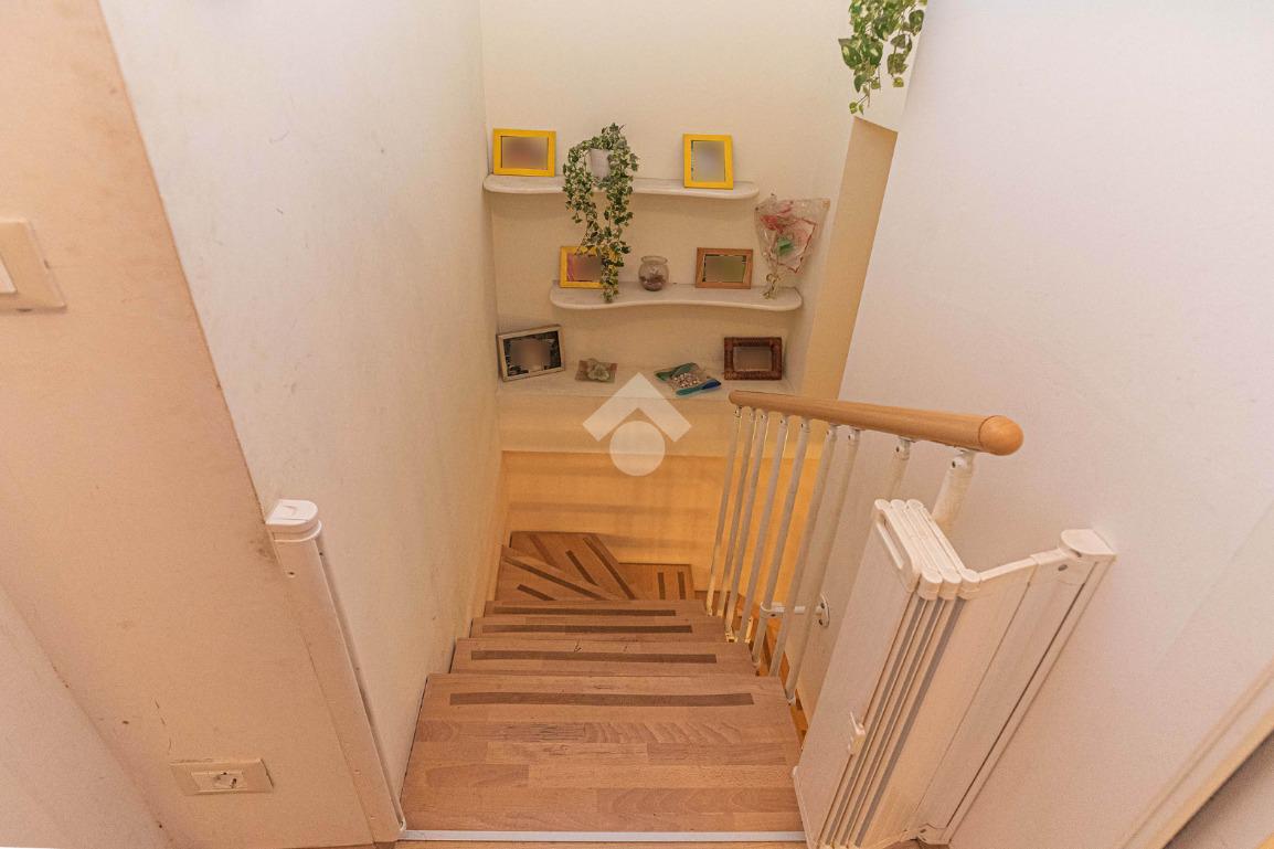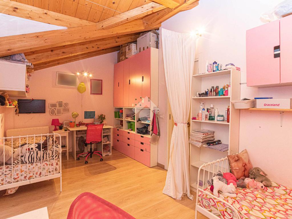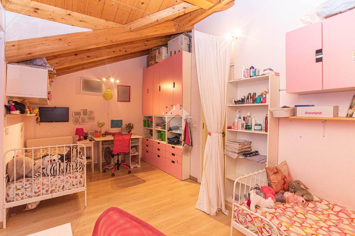 Collegata tramite scala interna, la zona notte al Piano Primo si compone di disimpegno, camera da letto matrimoniale con cabina armadi e terrazzo che si affaccia sul giardino privato, seconda camera da letto con balcone e con doccia.