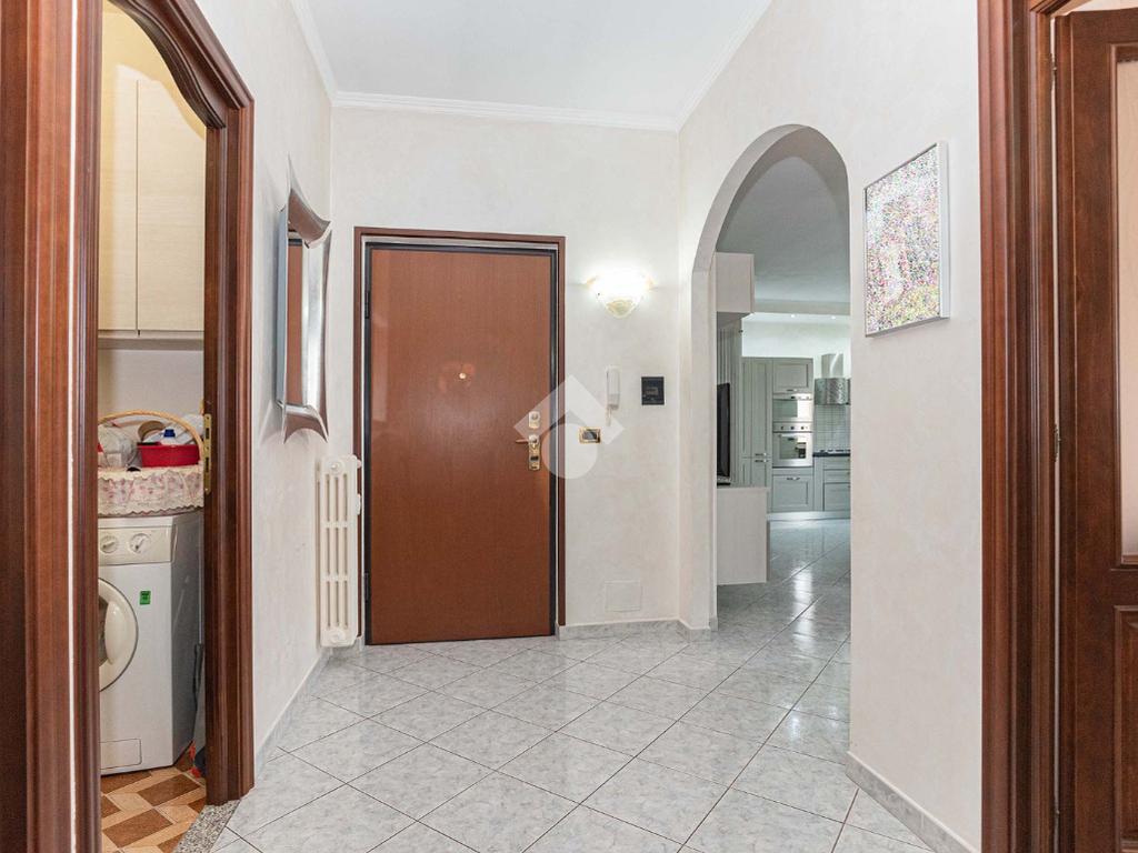 Attraverso il portoncino blindato si accede all'ingresso che distribuisce attorno a se tutti i locali dell'immobile.
