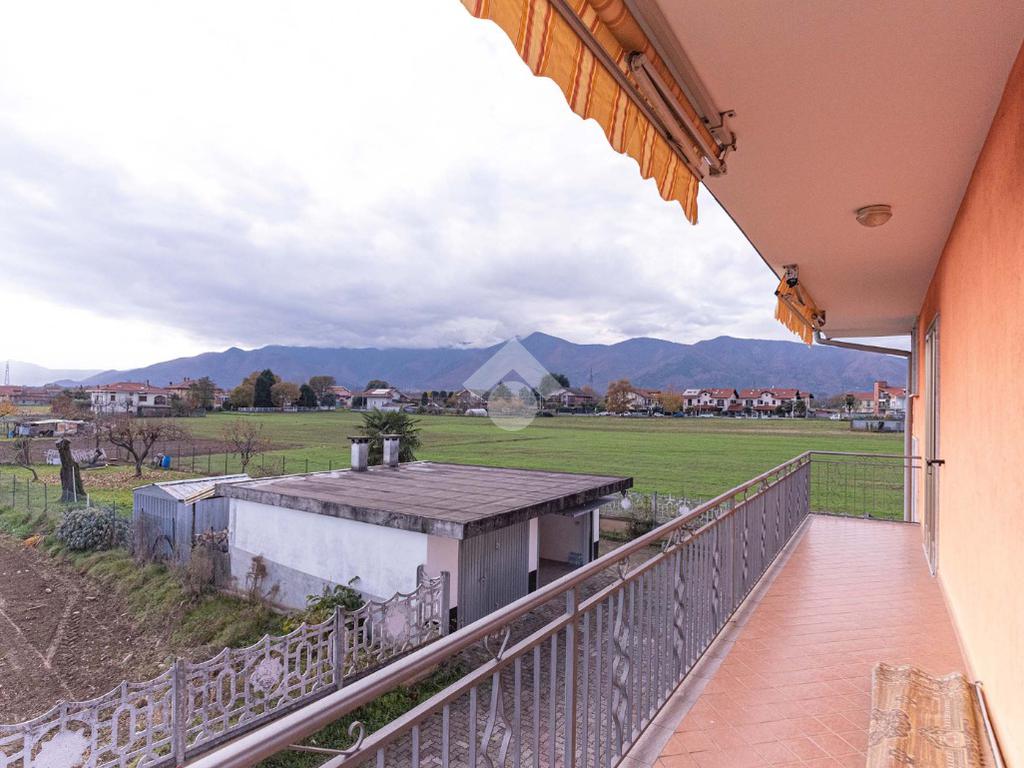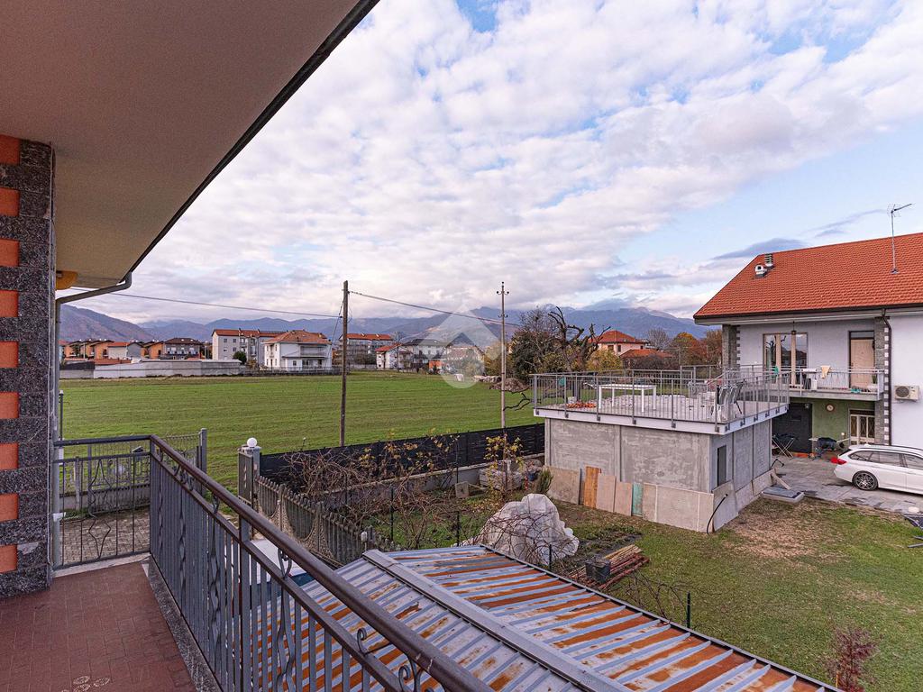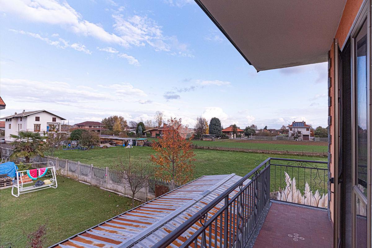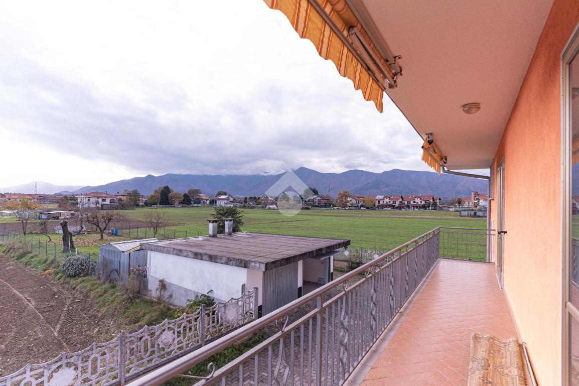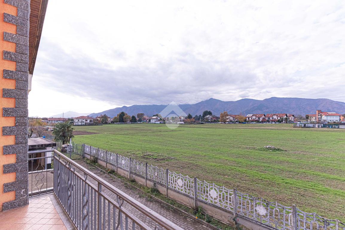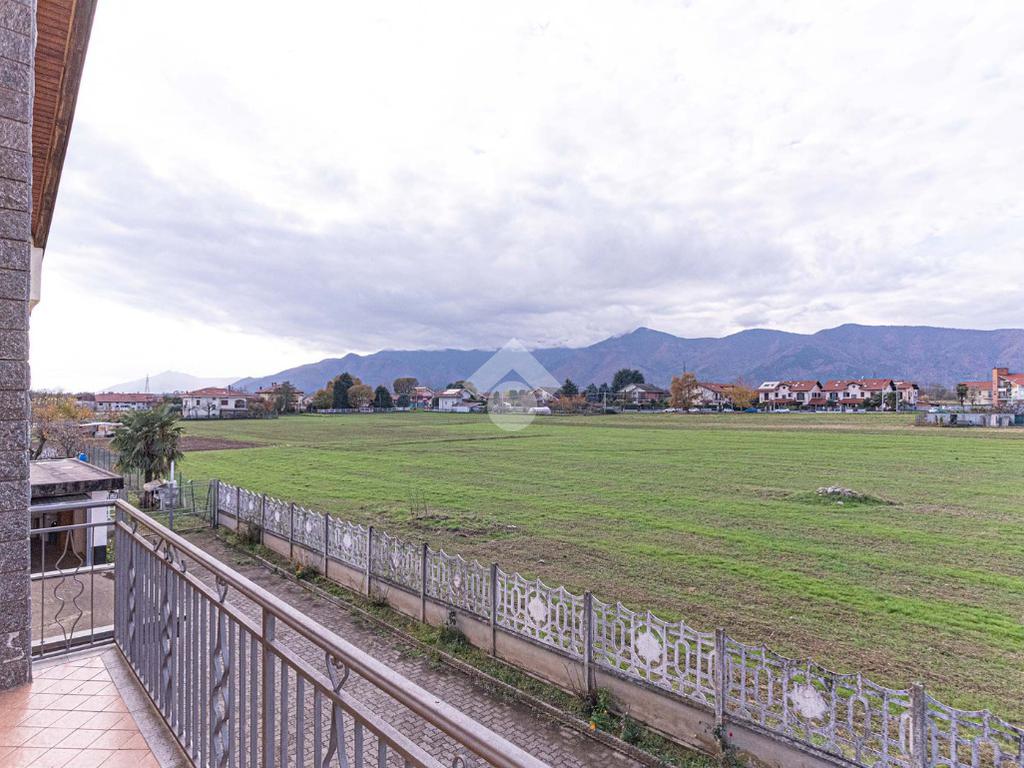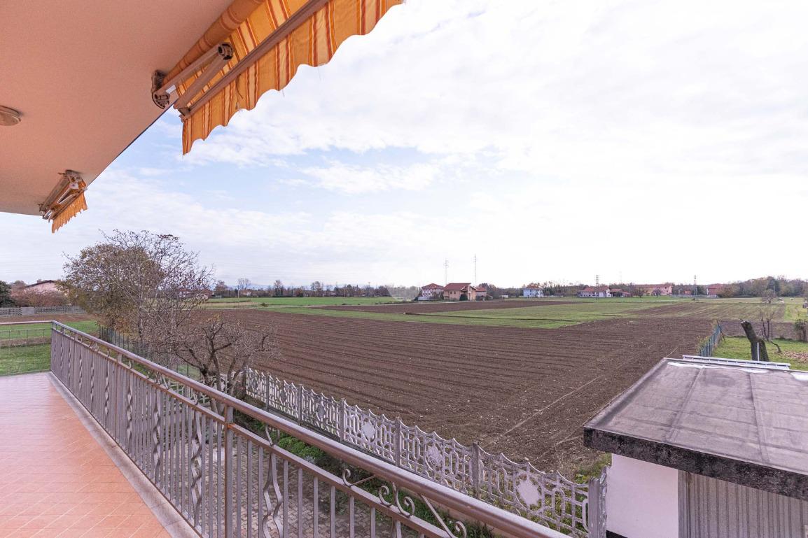 La visuale è aperta sulla campagna circostante e verso la Catena Alpina.