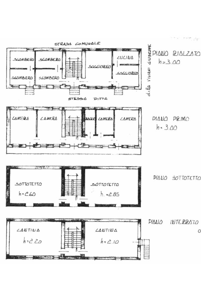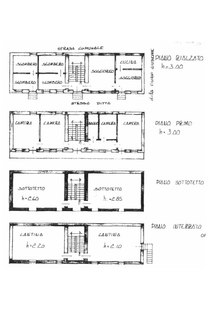 Tutti i piani sono rispettivamente di circa 110 mq ciascuno. L'immobile per la sua conformazione si presta a diverse tipologie di recupero.