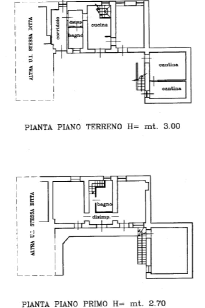 Accessibile sia internamente che esternamente il Piano Primo compone la zona notte formata dal Disimpegno, due spaziose Camere da Letto ed il Bagno con doccia.