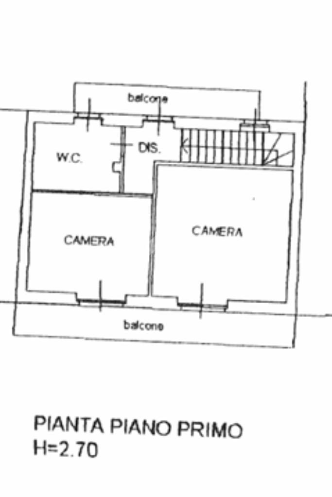 Al Piano Primo la zona notte interamente pavimentata con parquet è composta dal Disimpegno, due Camere da Letto, di cui una molto ampia dove volendo è possibile allestire una capiente cabina armadi, e il secondo Bagno.