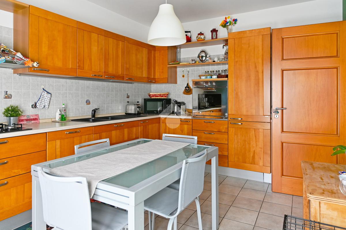 il Salone e la Cucina sono serviti unitamente nella parte esterna dall'ampio balcone che affaccia nel lato Sud dell'immobile e sul giardino privato.